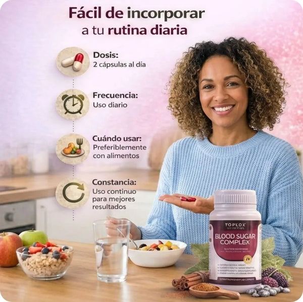 Equilibra tu azúcar y energía diaria naturalmente Apoya niveles saludables de glucosa, reduce antojos y controla bajones de energía con una fórmula vegetal.